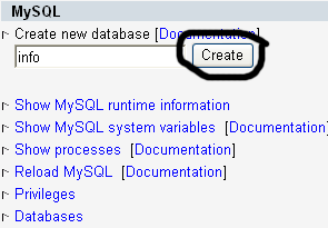 بإنشاء قاعدة بيانات اسمها info