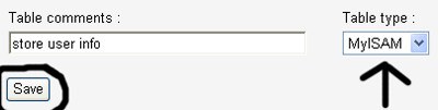 العباره Create new table on