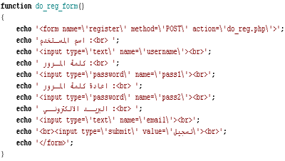 هذه الداله نموذج التسجيل للمستخدم ( اضغط على الصوره