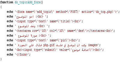 تفتح له رابط اضافة موضوع , ندخل لهذه الداله اسمه