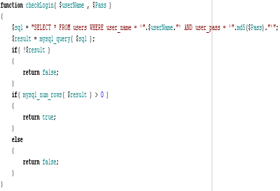 من اسم المستخدم وكلمة المرور ( لاحظ اننا نقارن بكلمة