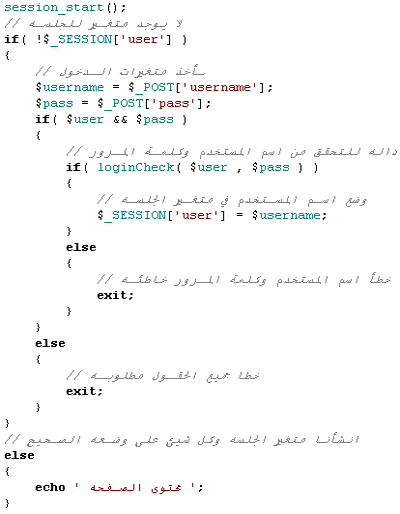 الاخير اذا كان متغير الجلسه موجود وتوجد به قيمه نقوم