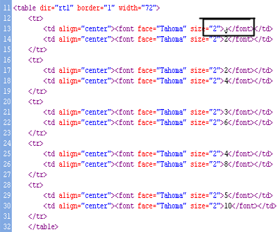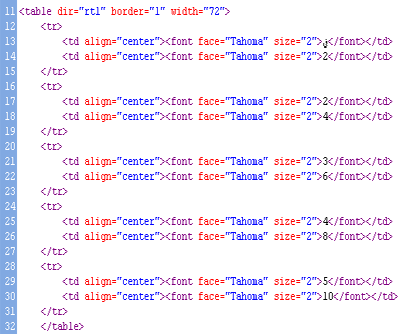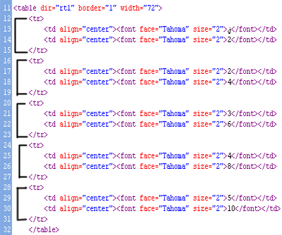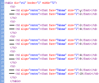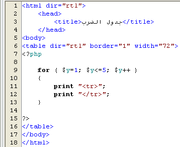 الجدول , تكرر الوسم عندنا , وفي كل مره نقوم بكتابة
