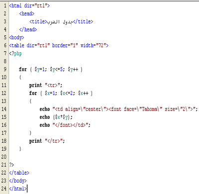 بعمل جدول الضرب ونحاول مع بعضنا البعض كتابة الكود ,