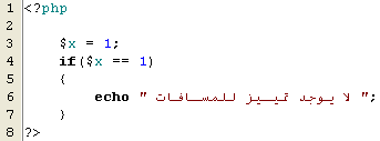 ولكن اليك ما اعرفه , في لغة PHP المسافات لا تحسب ,