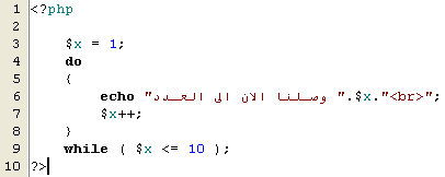 العباره , لنقم بالعد من 1 الى خمسه , مثلما فعلنا مع