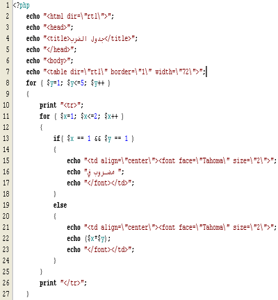 PHP , كمثالنا في جدول