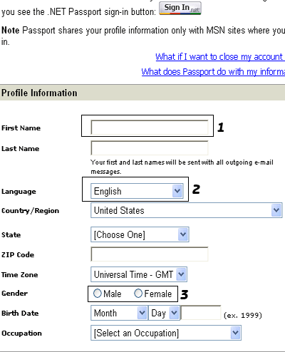 ( جزء من نموذج التسجيل في بريد الهوتميل ) لتساعد